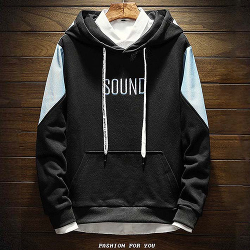 【M・ブラック】(SOUND パーカー 長袖) 男女兼用 メンズ レディース レーナー フード付き カットソー 大きいサイズ Tシャツ ロンT vネック ポロシャツ カットソー おしゃれ 綿 春 夏 秋 冬 服 厚手 無地 黒 青 白 ポロシャツ ロゴ プリント トップス かわい