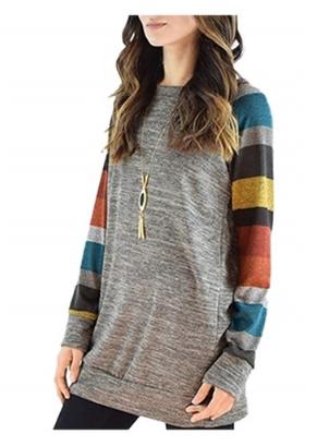 zwma 061upk3 かわいい ボーダー ニット チュニック グレー / イエロー 長袖 レディース 体型カバー ワンピース 大きいサイズ も