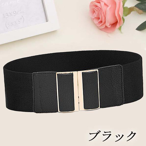 A【ブラック】(スクエア 幅広 ゴムベルト レディース)