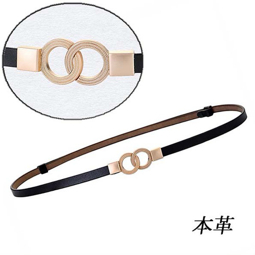 D【ブラック】【本革 スライドベルト】W リング 細 ベルト レディース 艶消し ゴールド バックル