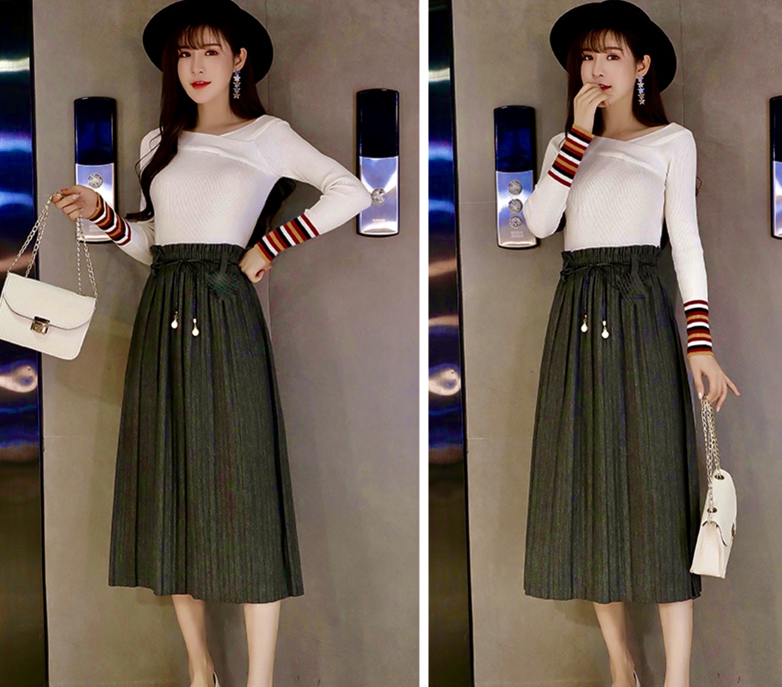 ygtx 023 プリーツスカート カーキ モスグリーン パール クシュっとウエストゴム ミモレ丈 レディース 大人 綺麗 かわいい ミモレ きれいめ