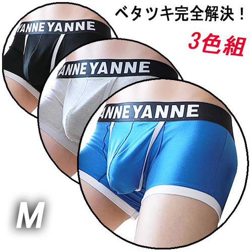 ●T【M/ブラック&ブルー&グレー】3色組【YY 左右開き ボクサーパンツ】