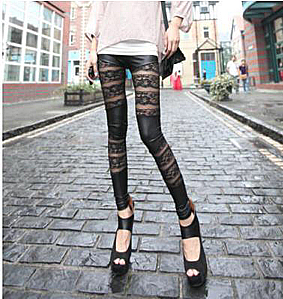 しばらく欠品しておりました、roab037 足元美人 ゴシック調 薔薇 レース フェイク レザー レギンスが、再入荷しました。