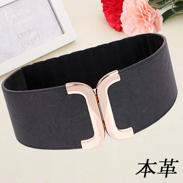 H【ブラック】【本革 幅広 ゴムベルト レディース】