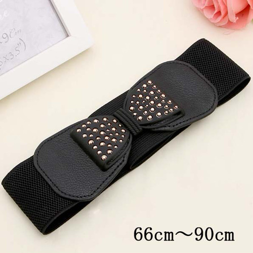 xmab 762kn10 【スタッズ リボン 幅広 ゴムベルト】ブラック