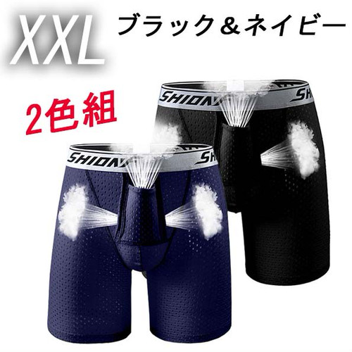 xmab 737upk3 ◆SL【ロング丈 ボクサーパンツ】2色組【ブラック&ネイビー/XXL】