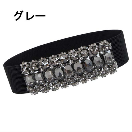 xmab 059upk3 ●Y【ラインストーン 幅広 ゴムベルト】【グレー】