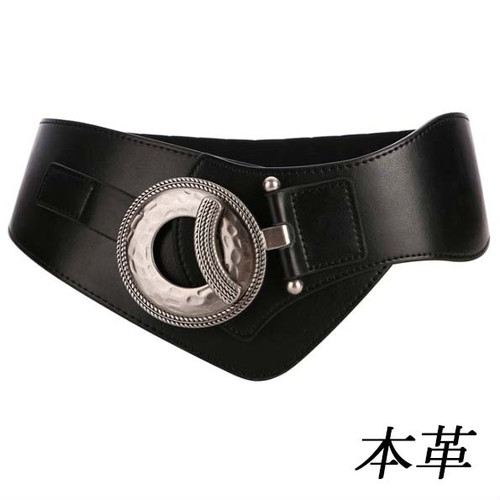 xmab 406upk3 L【ブラック】【本革 幅広 ゴムベルト レディース】