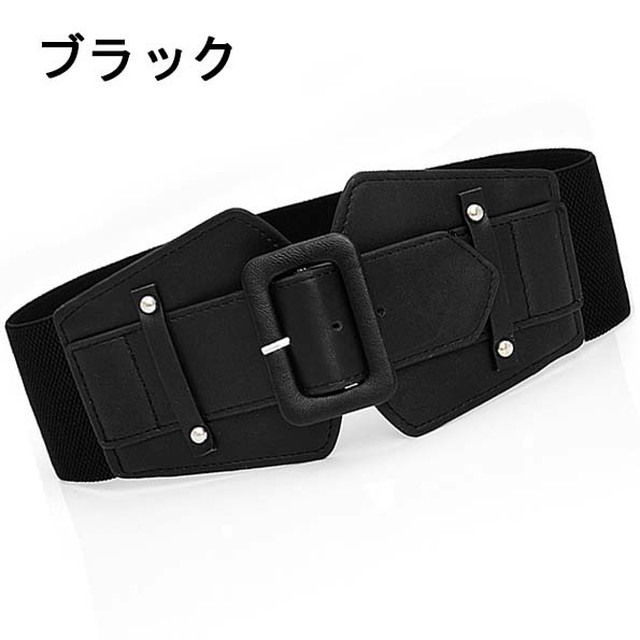 【ブラック】D【レザー 幅広ゴムベルト】