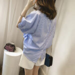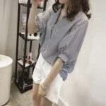 ストライプが爽やかな印象の五分袖ブラウスなので、