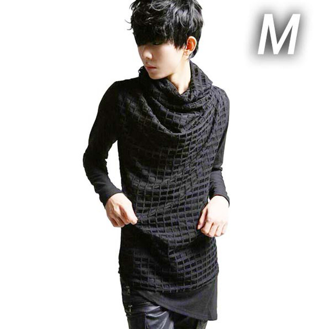 xmab 527upk3 ●M/ブラック【ブロックメッシュ ドレープ ネック カットソーソー ストレッチ】
