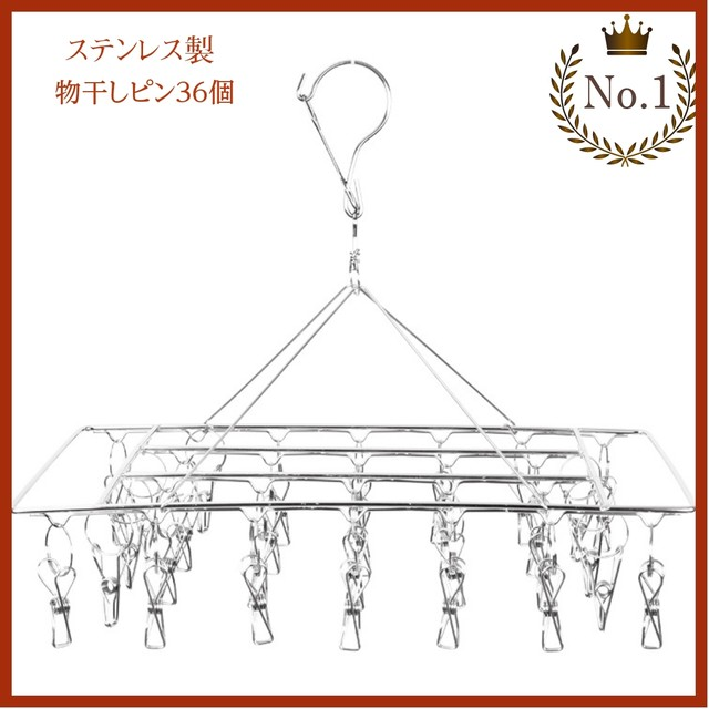 ynsa 028tk1k クリップハンガー おしゃれステンレス製36ピンチ クリップ付 洗濯バサミ付 洗濯 物干し 靴下 下着 ブラジャー